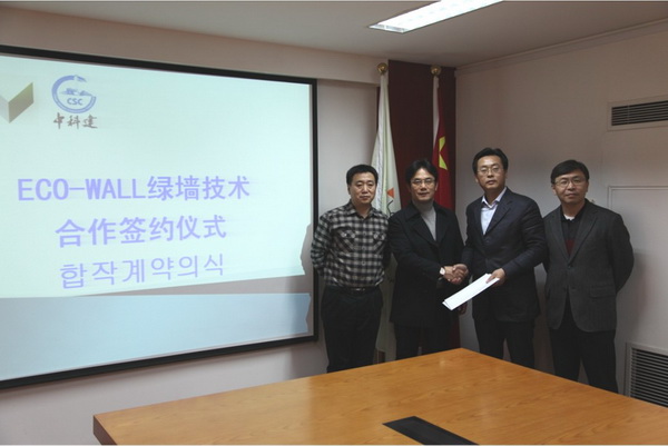 Eco—wall是韩国一家专业从事绿墙高新技术研发和施工技术的公司,其技术目前在国际上属于领先地位,且尚未在中国市场推广。此次Eco—wall公司与中科建集团的合作,必将在未来为双方在中国乃至国际的绿色建筑业务拓展方面开启一页新的篇章。